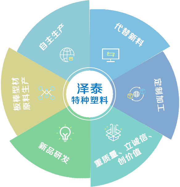 溫州澤泰特種塑料有限公司專(zhuān)業(yè)致力于特種工程塑料產(chǎn)品的擠出、注塑、模壓及機(jī)械加工,特別在PEEK(聚醚醚酮)、 PI(聚酰亞胺)行業(yè)有多年的生產(chǎn)加工經(jīng)驗(yàn)。專(zhuān)業(yè)生產(chǎn)耐磨自潤(rùn)滑塑料原料、耐磨耐高溫塑料原料、鐵氟龍?jiān)鰪?qiáng)耐磨塑料、碳纖維增強(qiáng)塑料、導(dǎo)電防靜電塑料、PI原料、PPS原料、peek原料、PEI原料、高溫尼龍?jiān)?、PEEK板材、PEEK棒材、PEI板材、PPSU棒材、PPS板材、PPS棒材、PPS加纖、PEI加纖、PEEK加纖、防靜電peek原料、防靜電pps原料、耐磨pi顆粒、pps加碳纖維、peek加碳纖維、高溫尼龍等,為不同行業(yè)提供特種工程塑料成品零配件及半成品型材的研發(fā)、設(shè)計(jì)、生產(chǎn)一體化解決方案。